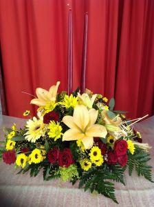 An oblong centerpiece that features our Autumn tones and designers creativity. Candles are included! Perfect for any size table.