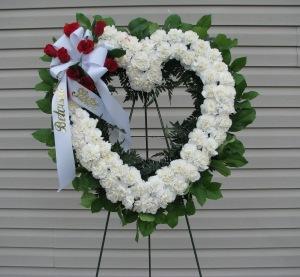 A modern design that's simple yet elegant. Can be done in all red or white. Open hearts are on a 6 foot easel.